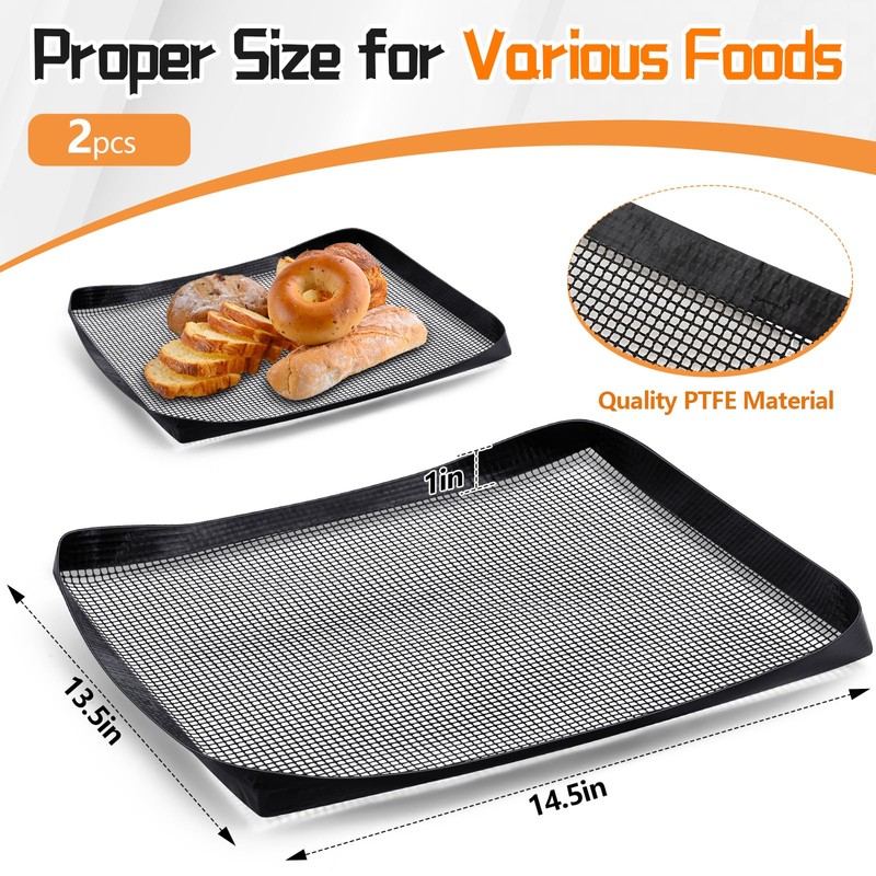 Teenyyou 2 Pcs PTFE Mesh Oven Basket Non Stick Mesh Trays Crisper Bakery Grill Mat Toaster Baskets for Quick Oven Accessories Baking Chips Chicken Wings Bread Heating, 14. 5" x 13. 5"x 1"