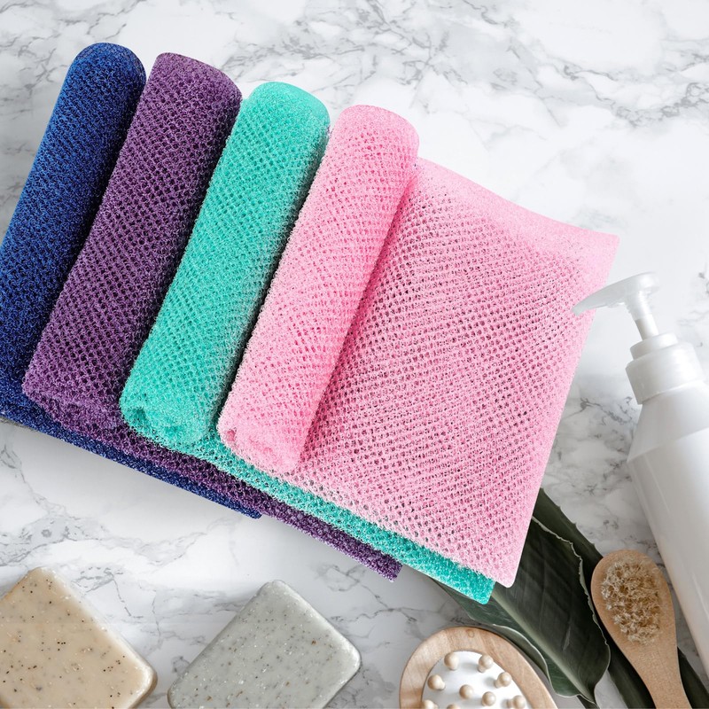 - Exfoliating Nylon Mesh Set: you will receive 4 exfoliating shower wipes in four colors, measuring approximately 31.5x 11.8 inches, offering ample coverage; This shower net can also be cut, you can cut according to the size you need
