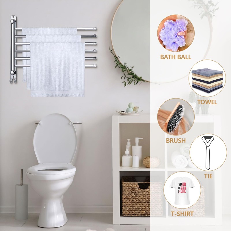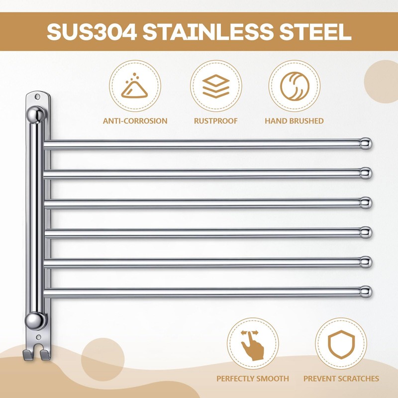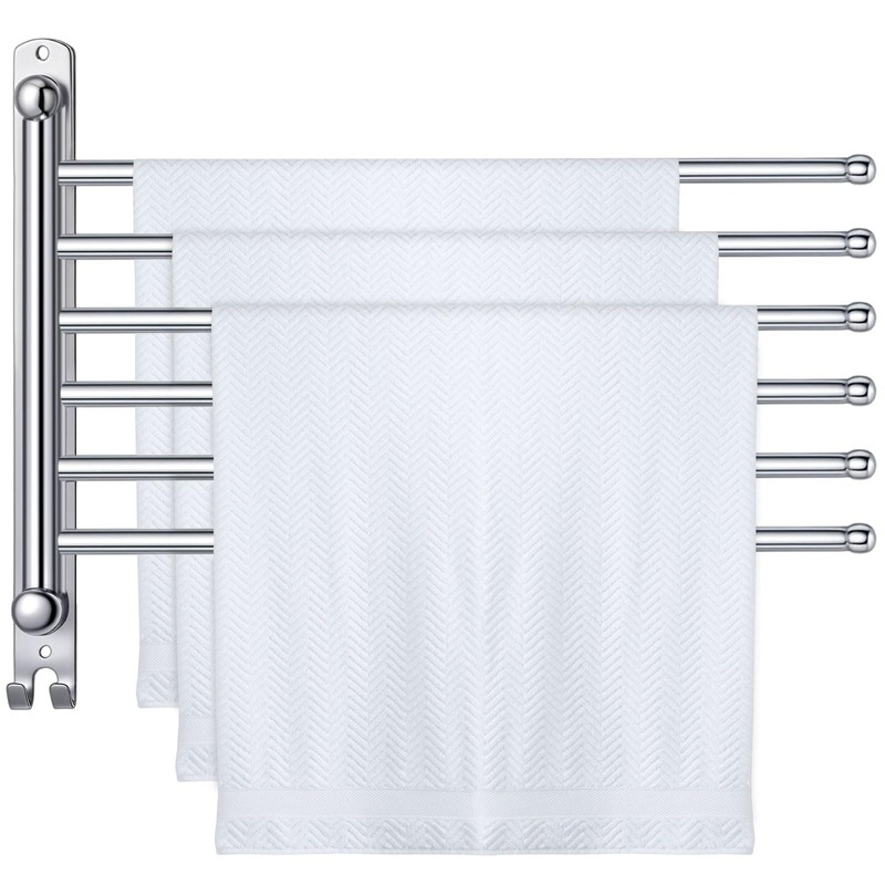 - Unique Design: the 180° swivel design with six arms maximizes space for hanging towels and other items; Each arm of the swivel towel rack rotates for optimal positioning, promoting effective drying