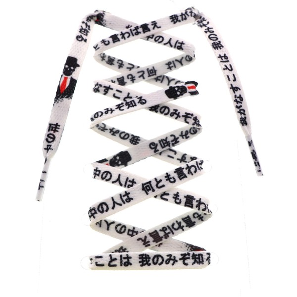 Teeoff Flat Printed Shoelaces,Shoe Laces for Sneakers, Designer Fun Shoestring (63“, Japanese White)