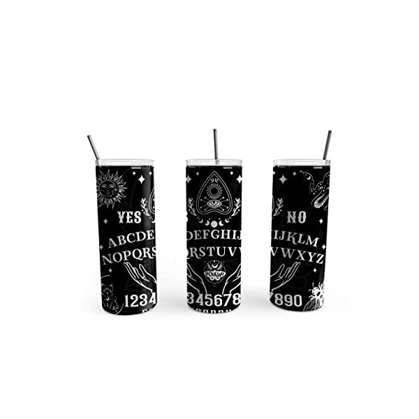 TeesAndTankYou Ouija Board Skinny Tumbler 20oz Travel Coffee with Lid and Straw Stainless Steel Insulated Hot or Cold