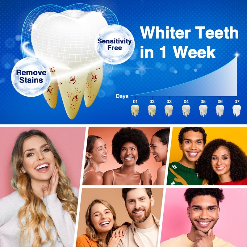 - Elevate Your Smile In Just 7 Days: Formulated for sensitive teeth ,say goodbye to pain and sensitivity with our teeth whitening strips formulated by dentists to protect and whiten your teeth.Containing top-grade ingredients , the whiting stripes have been clinically proven to be effective and safe for whitening teeth. Up to 3 shades WHITER in just 7 Applications!(14 pack: each pocket with 2 strips).