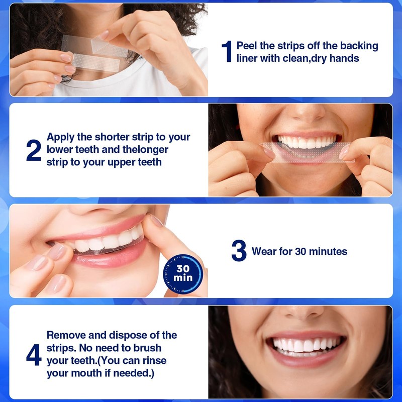 - Non-Slip Whitening Strips for Comfort: Featuring advanced anti-slip technology, our teeth whitening strips stay securely in place, allowing you to move freely while whitening your teeth. Perfect for a busy lifestyle, these white strips make teeth whitening easy and effective.