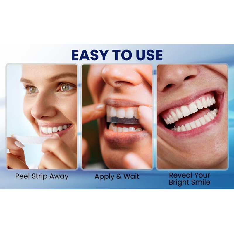 • TEETH WHITENING FOR SENSITIVE TEETH - Our strips are specially formulated and won’t leave you with sensitive teeth and gums, you’ll have whiter teeth without pain!