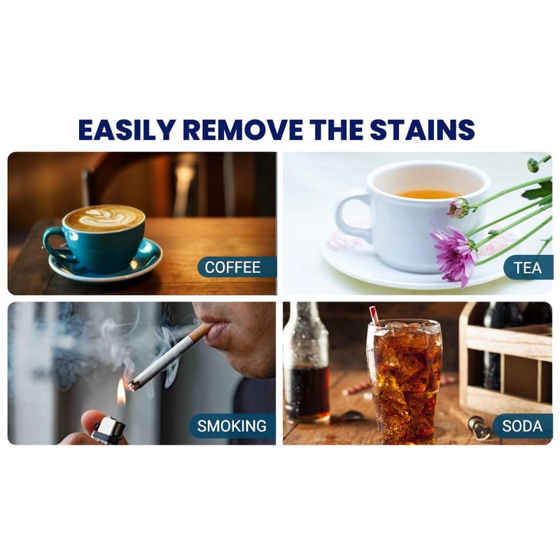 • STAIN REMOVAL & TOOTH WHITENING - You’re able to use the 28 strips (14 upper and 14 lower) to remove coffee, wine or smoking stains from your teeth with no fuss!