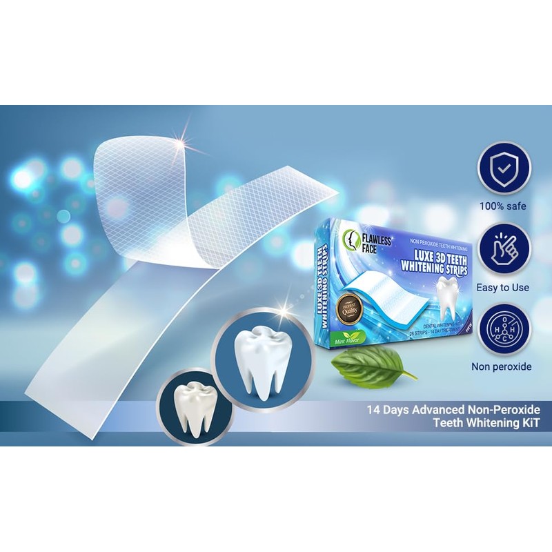 Looking for an easy and affordable way to get whiter teeth? Look no further than our teeth whitening strips! Our strips are safe and easy to use, and they will give you noticeable results in just a few short treatments. Our strips are made with a unique, peroxide-based formula that quickly and effectively removes stains and discoloration. They are also gentle on your teeth and gums, so you can use them with confidence. Each treatment only takes 30 minutes, so you can easily fit them into your busy schedule. And because they are so affordable, you can use them as often as you like to maintain your beautiful, white smile. So don’t wait any longer, order our teeth whitening strips today and start enjoying the benefits of a brighter, whiter smile! - Teeth whitening strips that are easy to use and work quickly - Made with natural ingredients that are gentle on your teeth and gums - No need for expensive teeth whitening treatments at the dentist - Whitens your teeth up to 8 shades in just 30 minutes - Flawless Face teeth whitening strips are the best way to get a brighter, whiter smile at home