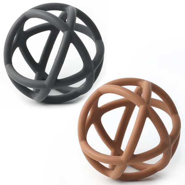 Teething Toys, TOPGOMES Baby Teether Toys, BPA Free Silicone Soft Ball Easy to Hold Teether for Babies Ages 6 Months+ (Clay+Dark Grey)