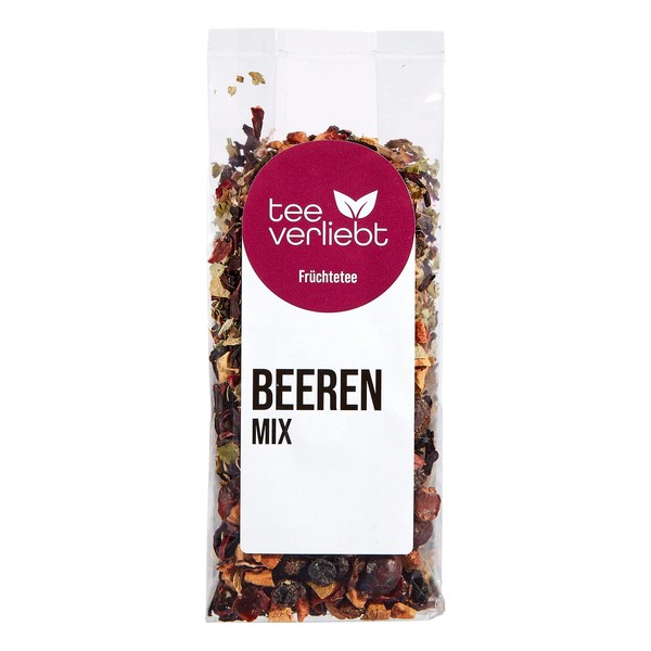 - The teeverliebt berry mix fruit tea contains the following ingredients: hibiscus flowers, grape berries, apple pieces, rose hips, rose hip peels, blackberry leaves, aroma, blackberries, raspberry pieces, strawberry pieces.