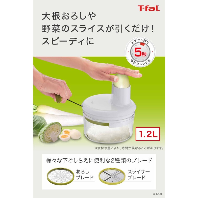 Tefal K166S3 Grater, Slicer, Manual, 3.1 gal (1.2 L), Washable Lid, 2 Types of Blades, Handy Grater & Slicer Neo, Spatula Included, Blade Does Not Hit Directly