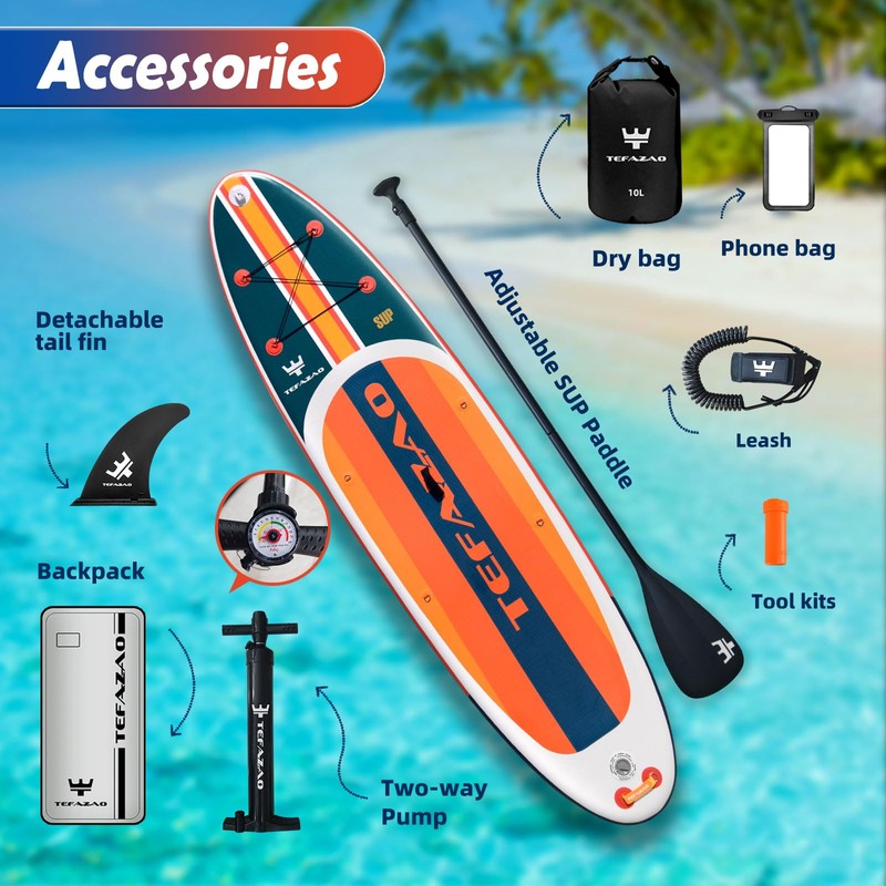 • 【Premium Quality Material】TEFAZAO SUP is made of 2 layers of military grade PVC material + EVA anti-slip material, This SUP board ensures exceptional durability and performance, Making it perfect for both beginners and experienced paddlers.