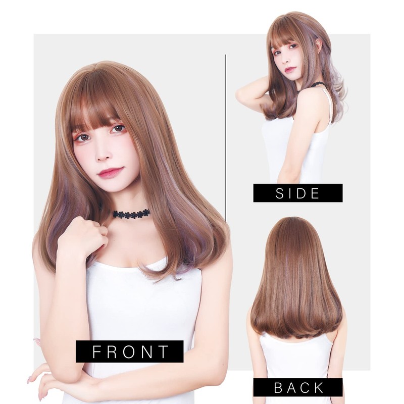 - Style: Medium Semi-Long; Bangs: Eyebrow Line, See-through Bangs; Colors: Black, Gold, Black, Purple, Brown, Purple (Depending on your monitor settings, the color of the actual product may differ slightly from the images. )
