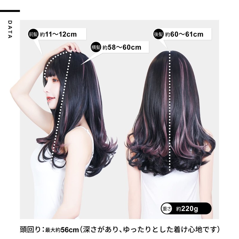 • [Manufacturing Method] Sewing machine made [wig length] Front: Approx. 4.3 - 4.7 inches (11 - 12 cm), Side: Approx. 22.8 - 23.6 inches (58 - 60 cm), Back: Approx. 23.6 - 24.0 inches (60 - 61
