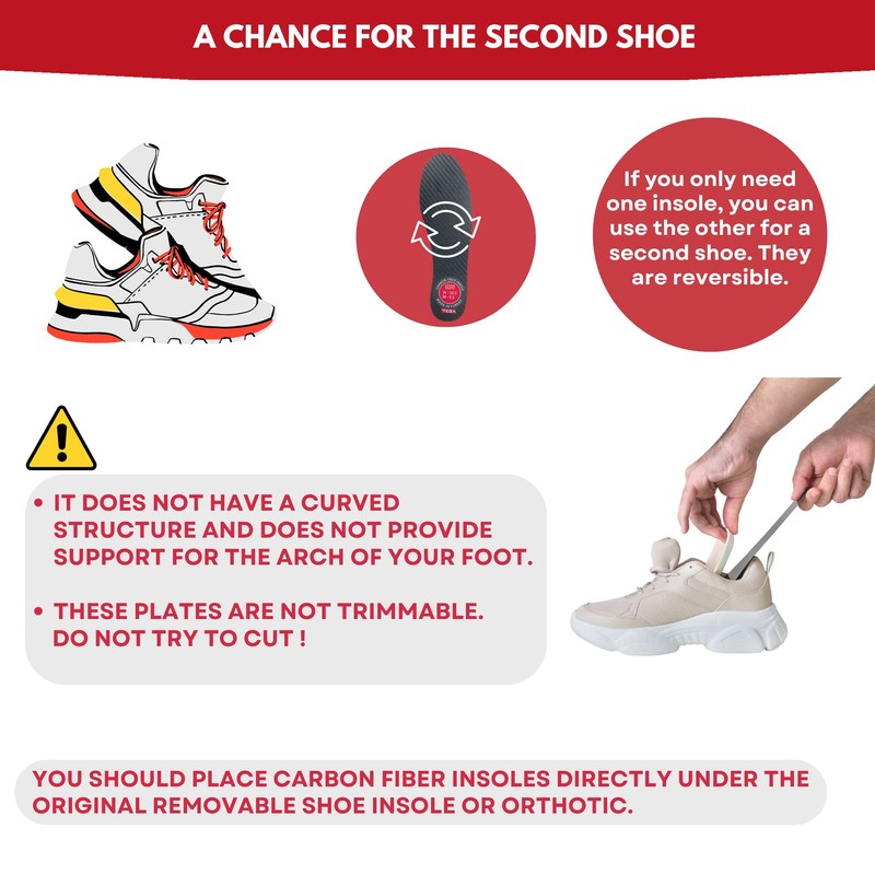 - →SOLD AS A PAIR: These carbon fiber insoles are sold as a PAIR, not a Single Piece. You will find it as a single piece at other stores and if you are going to use it for both feet, you will need to buy two from their stores. The second picture shows you how to choose the correct size for your carbon fiber insert.. They are suitable for sports and sneakers shoes, not for high heels or dress shoes.