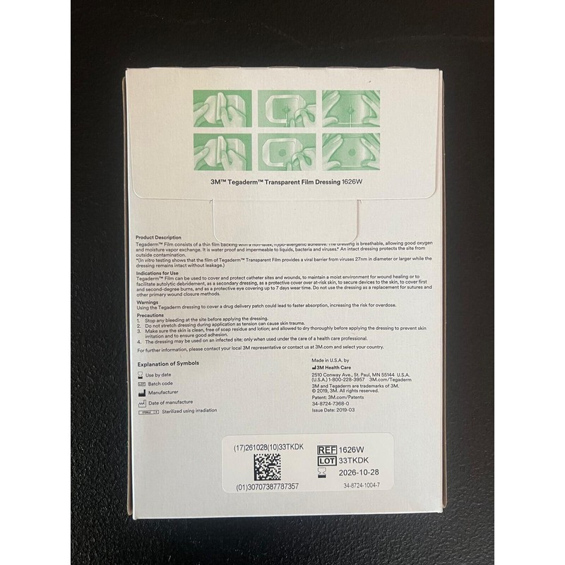 1626W Tegaderm Transparent Dressing 4" X 4 3/4" - Box of 50. Exp 2026-10