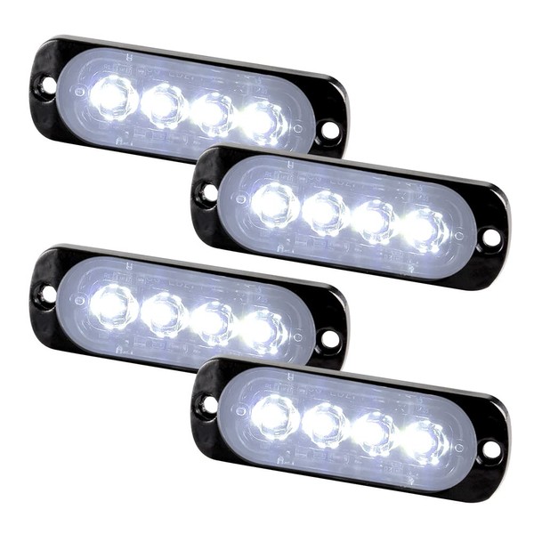 Teguangmei 4Pcs Ultra Thin 4LED Emergency Strobe Lights White Hazard Beacon Warning Flash Lights Universal for Car Vehicle Truck 12-24V