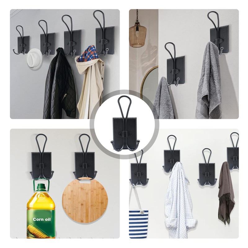 - 【Double Coat Hooks】Double big wall hooks design, can hang more clothes, such as coats, towels, robes, hats, winter clothes, jackets, scarves, wallets, belts, umbrellas, keys and so on. Our wall hanging hooks can save your space and keeps your home tidy.