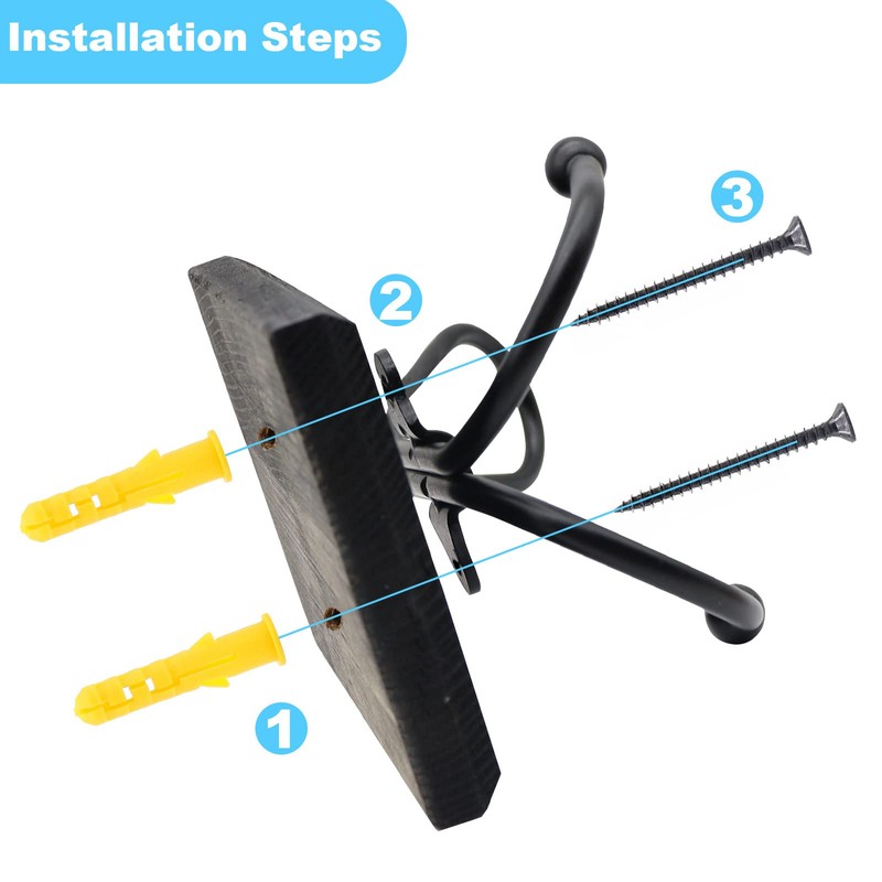 - 【Easy to Install】Wall mounted coat hooks. Just drill two holes on the wall, then fix the wood board and towel hooks on the wall with screws (For installation steps, please refer to the installation manual).