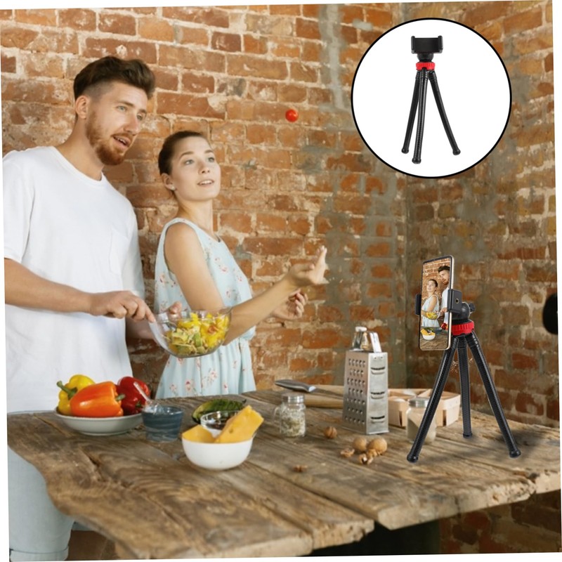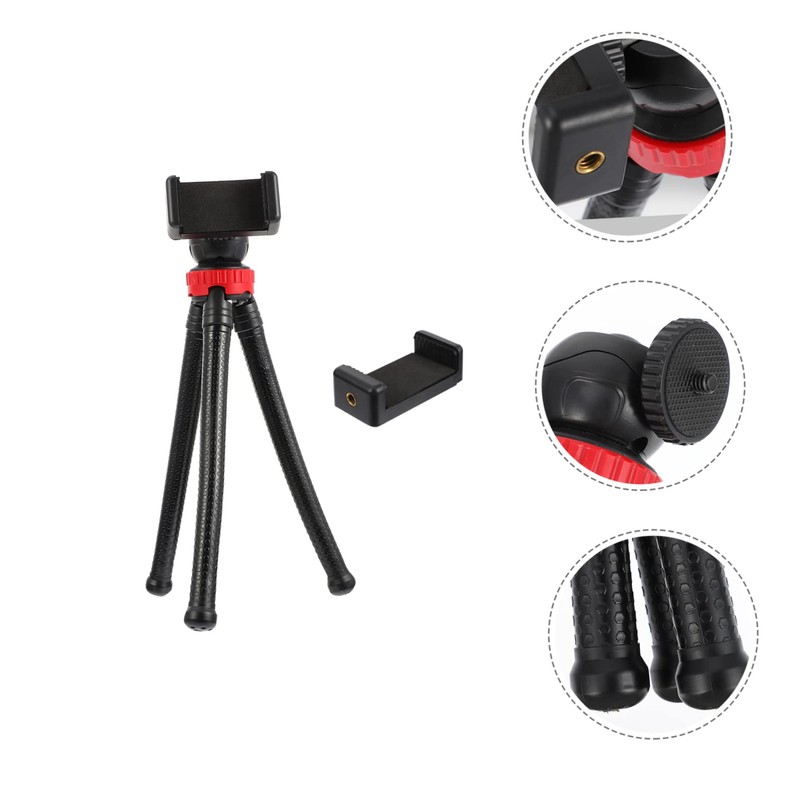 TEHAUX 1pc Flexible Photography Tripod with Phone Clip Durable Ball Head Design for Stable Camera Support Flat Surfaces Compatible with Cameras and Smartphones for and Live Broadcasting