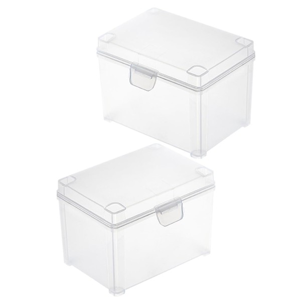 TEHAUX 2Pcs Small Plastic Card Storage Boxes Stackable Desktop Organizers with Lids for Hairpins Jewelry and Small Items Multi Functional Containers for Home Office Use