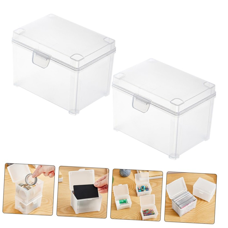 TEHAUX 2Pcs Small Plastic Card Storage Boxes Stackable Desktop Organizers wit...