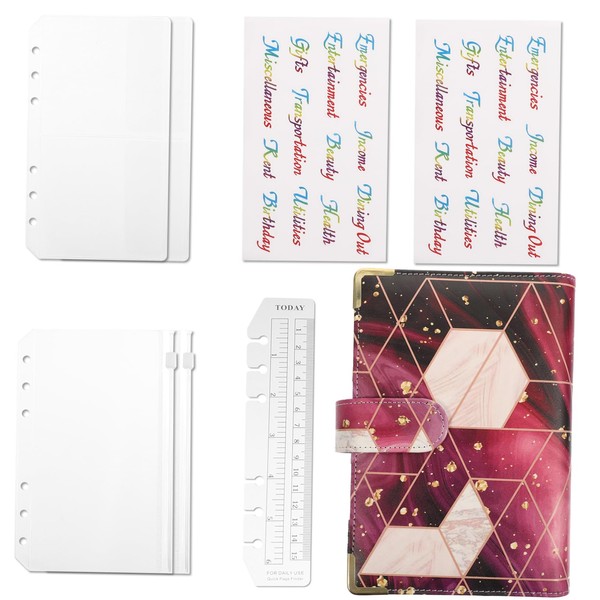 TEHAUX Budget Binder Money Organizer A6 Size Marble Notebook Zipper Envelopes Money Saving Binder