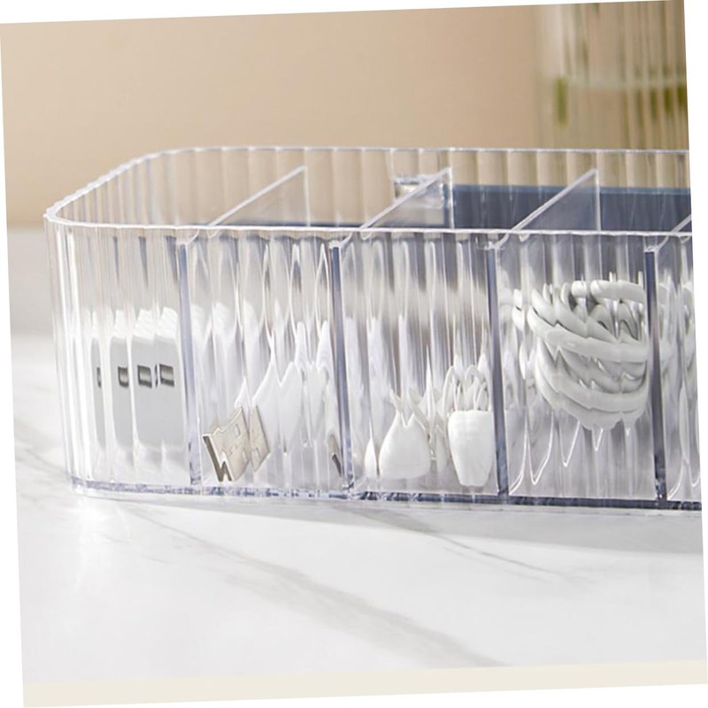 TEHAUX Desktop Cable Management Box Lid Blue Dustproof Charging Cable Organizer Multi-Grid Storage Container