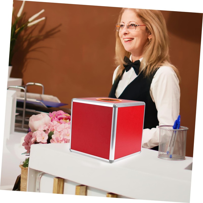 - Made of aluminum alloy material, firm and practical for use, universal in many occasions donation box.