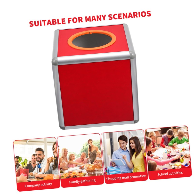 -Size: 25.00X25.00X25.00cm/9.82X9.82X9.82 in raffle ticket box.