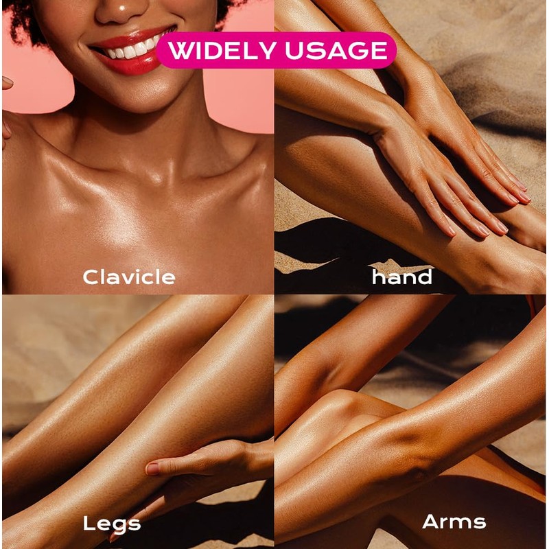 - Body Glow Oil: Shimmer body oil contains fine glitter particles that give off a natural sunny glow when applied to the skin, making your skin look smoother and healthier, it is suitable for parties, beaches, dates and other occasions
