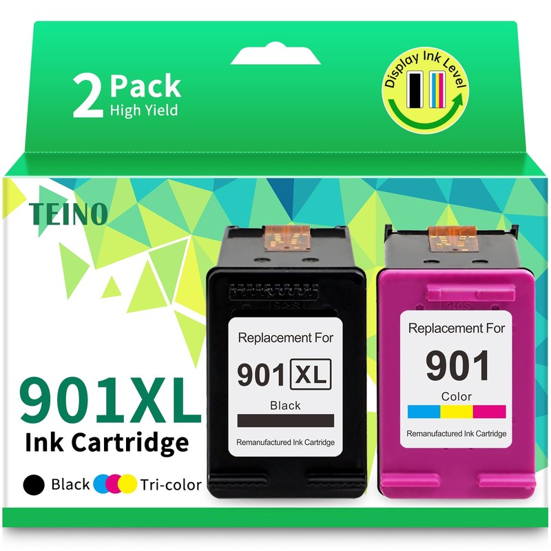 - 901XL Package Contents: 2 pack remanufactured ink cartridges replacement for HP 901 901XL ink cartridges for HP printers (black tri-color, combo pack)