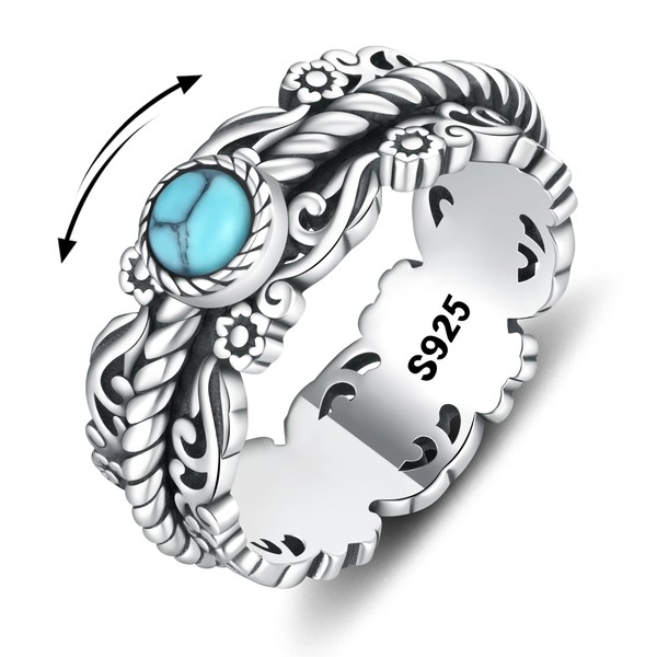 Teioa Turquoise Anxiety Relieve Rings - 925 Sterling Silver Spinner Fidget Ring Worry Stress Relieving Boredom ADHD Autism Ring for Women (7#)