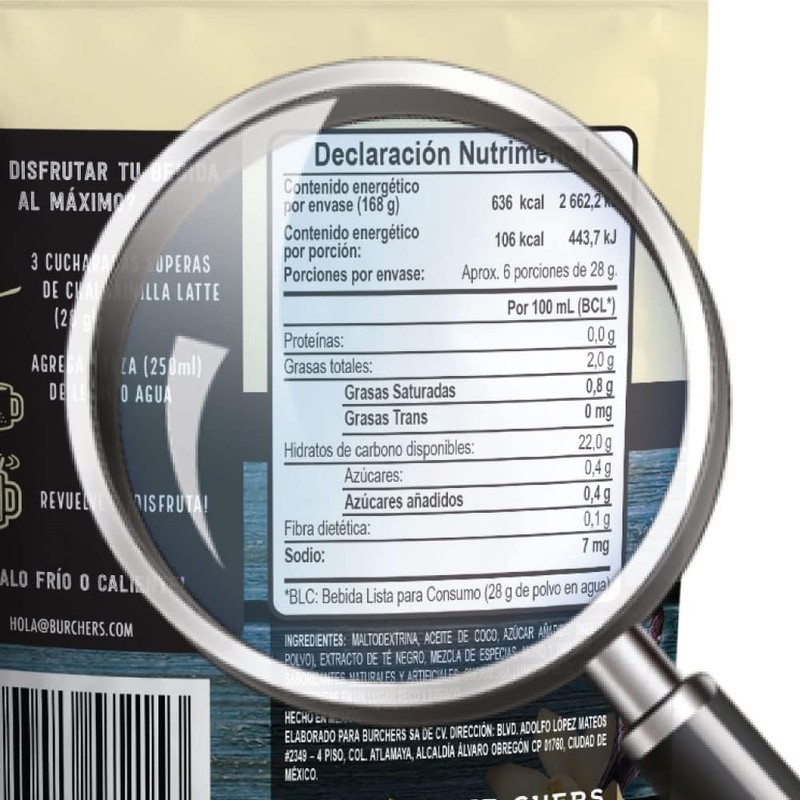 | Ingredientes | azúcar, jarabe de maíz, aceite de coco, miel en polvo, extracto de té negro, caseinato de sodio, fosfato dipotásico, mezcla de especias, mono y diglicéridos, saborizantes naturales y artificiales. |