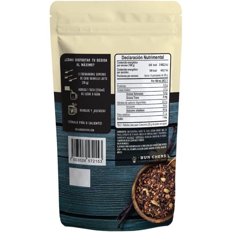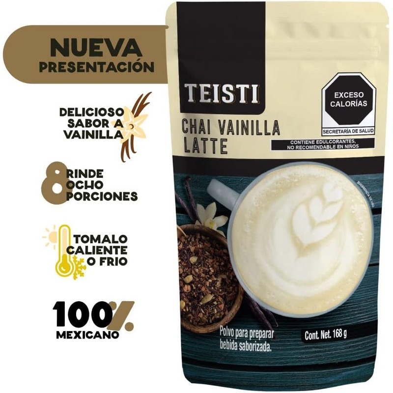 Disfruta de una deliciosa bebida en polvo con sabor a chai y vainilla, perfecta para consentirte y saborear en cualquier momento.