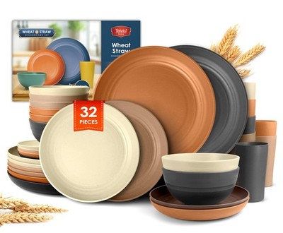 Teivio 32-Piece Kitchen Plastic Wheat Straw Dinnerware Set, Service for 8, Un...