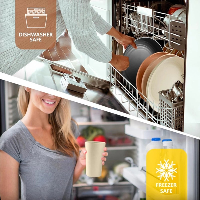 - Freezer & Dishwasher safe: Cleaning up is a breeze as these dinnerware are dishwasher safe. They are also used for store leftovers in the freezer. WARNING: NOT recommend for microwave.