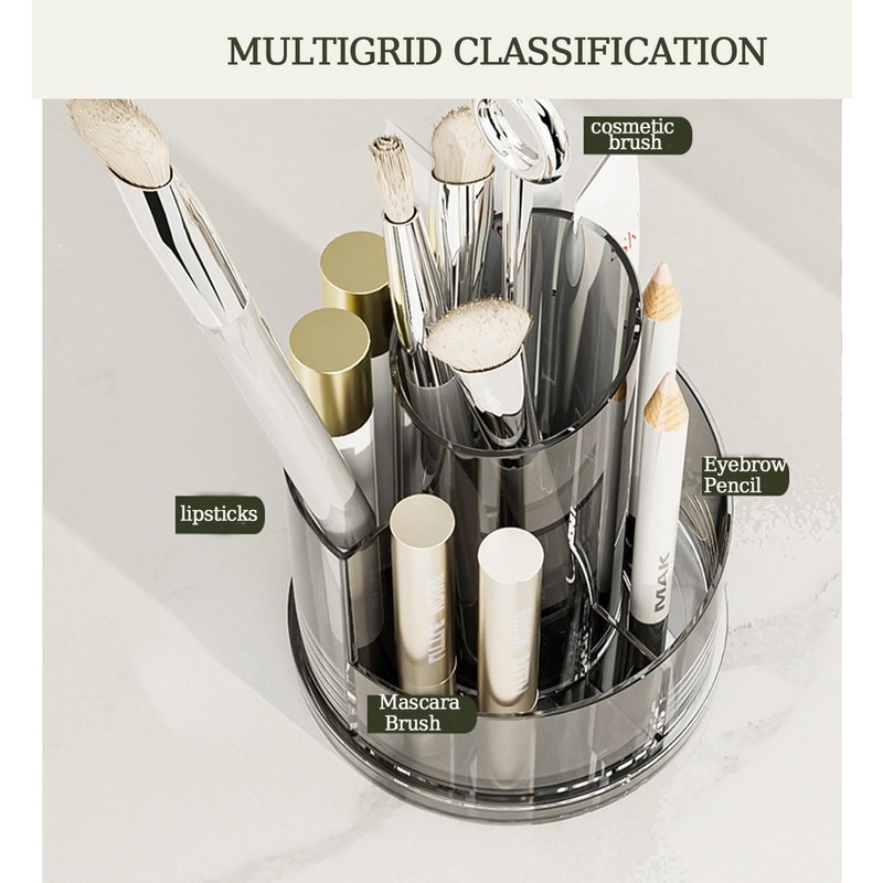 • 【GREAT ORGANISER】- No more messy brushes on your vanity! This 360 rotating makeup brush holder will keep them neat and tidy, and also shield them from dust and dirt with its transparent lid. Perfect for dressers, bedrooms, bathrooms, nightstands or countertops.