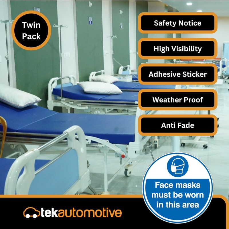 Tek Automotive Face Masks Must Be Worn Sticker – Twin Pack, 99mm Diameter – Safety Sign – Gloss Permanent Vinyl – Indoor & Outdoor Use for Shops, Offices, Schools, Hospitals & Public Spaces