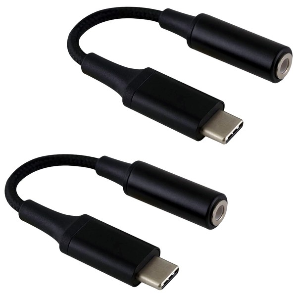Tek Styz USB C to 3.5mm Headphone Adapter Compatible with GOPRO Hero6 with Digital DAC Chip That's Dual 1/8 inch TypeC/PD! (2Pack / Black)