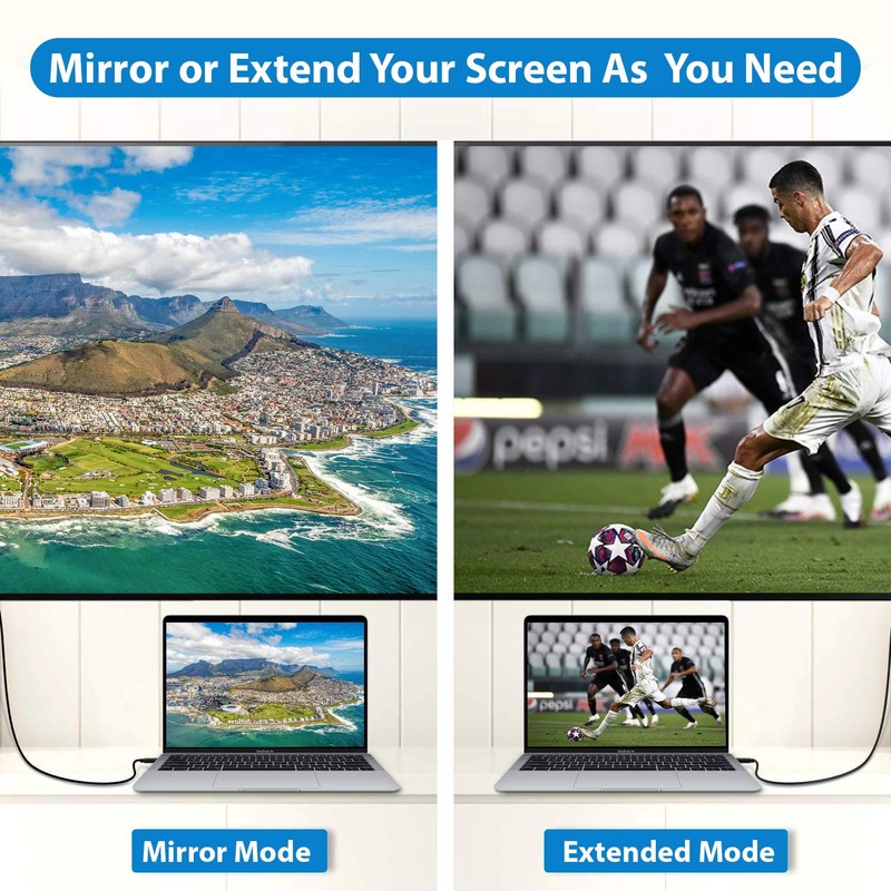 - ⚡【Plug and Play】: No driver / software required. Support the mirror and extend mode of MacOS, WinOS, ChromeOS. Also compatible with New Tablet, Android devices (Desktop Extended Mode may be possible when using Adobe Lightroom and some other applicable apps.)