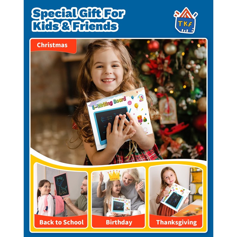 - Great Gift Choice for all age groups: Do you have a hard moment for picking a unique gift for your families or friends? Have a look at this multi-use 15inch LCD writing tablet! A suitable gift for men, women, children, teen boys and girls who have everything. It would be a surprise gift to be received on Christmas, Thanksgiving, Birthday, Teacher's Day, Mother and Father's Day, Children's day, etc.