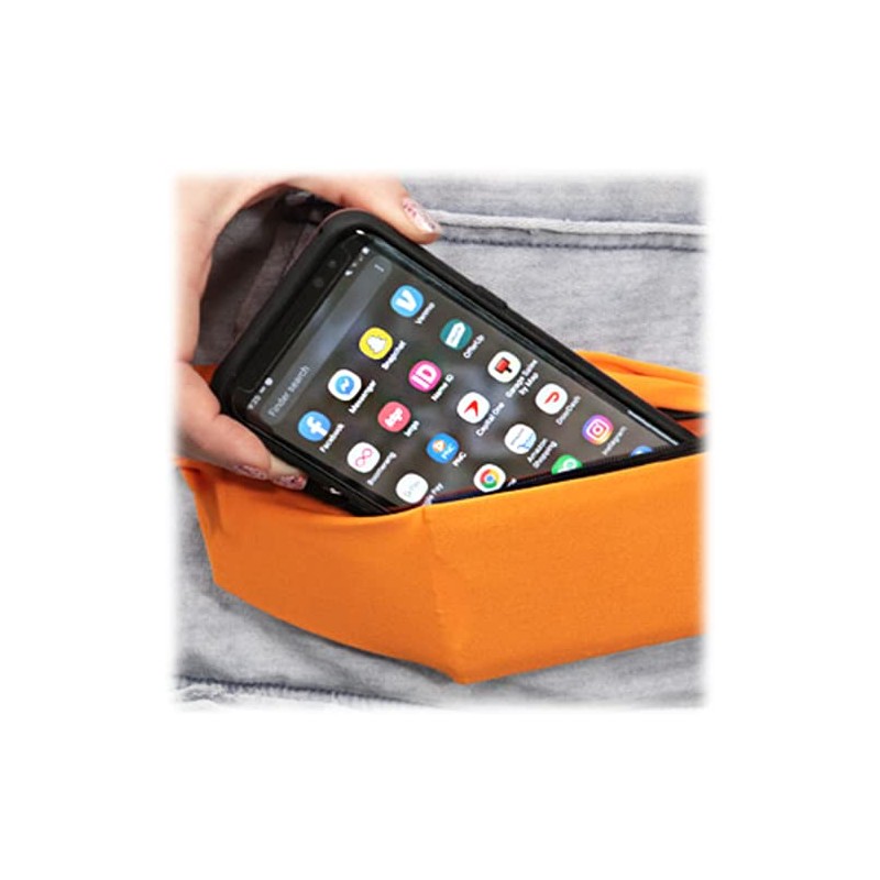 • The pockets are made of durable, super-stretchy material to hold a variety of items like your smartphone, wallet, and more! We were even able to fit the currently largest iPhone 11 Pro Max with a case inside the main pouch.