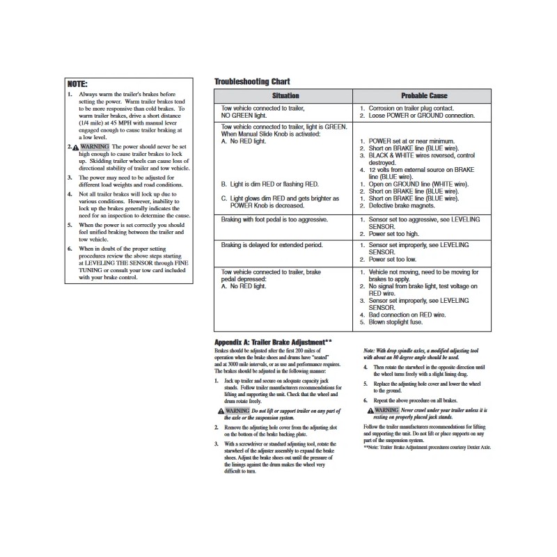 Brake Control Specs: