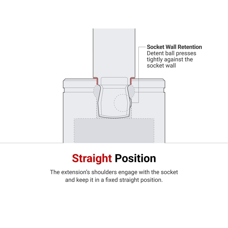 - Straight Position – The extension's shoulders engage with the socket and keep it in a fixed straight position