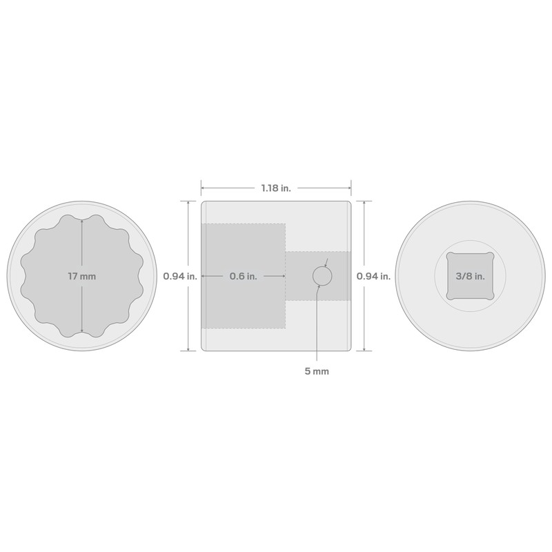 TEKTON 3/8 Inch Drive x 17 mm 12-Point Impact Socket | SID12317