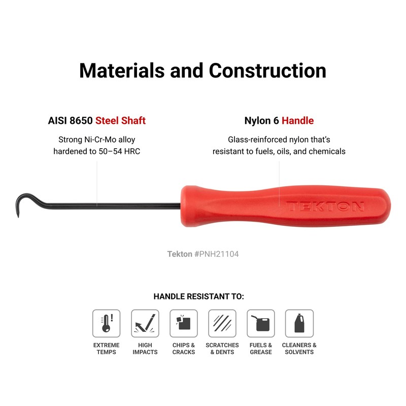 - Manufactured in Michigan – Tekton's family of picks, hooks, and mini pry bars is made entirely in Michigan with only USA-sourced materials