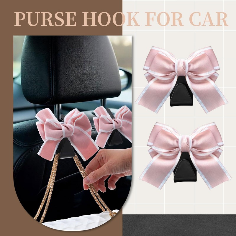 TELAIN 2-Pack boot organiser, Car Hooks adorable Bow Headrest Hanger for Bags and Handbags, Space-saving Car Accessory (Pink)