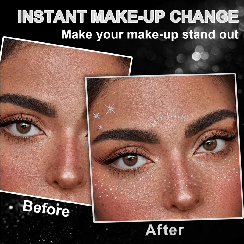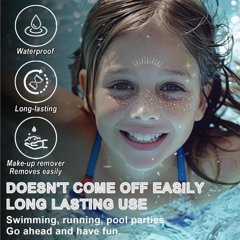 - Waterproof and durable: our face tattoos are both water and sweat resistant and retain their shine all day long. Whether swimming, running or dancing, these stickers will stay in place and add a touch of magic to your look without worrying about peeling off. Perfect for those who love long nights