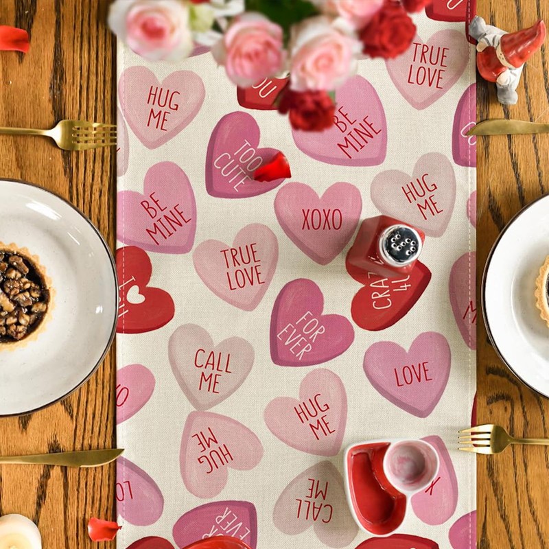 TELAIN Table Runner 13x72 Inch, High Quality Polyester, Durable and Machine Washable, Perfect for Valentine's Day and Special Occasions, Colourful Design