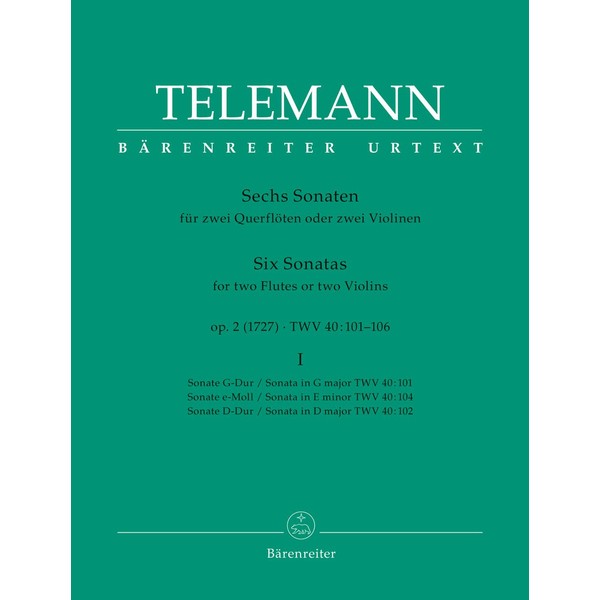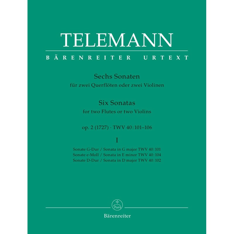 Telemann: Sonatas for Two Flutes or Two Violins, Op. 2, TWV 40:101, 102, 104 - Volume 1 (Performance Score)