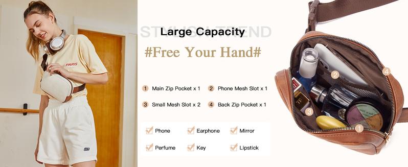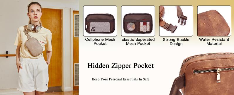 Telena Leather Belt Bag for Women Fashionable Fanny Packs Cross Body Bag Wais...